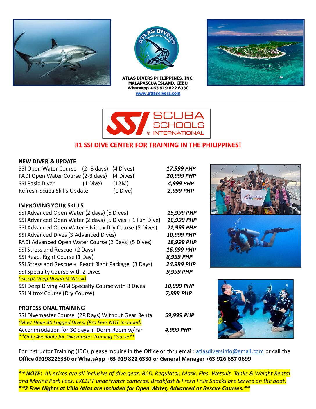 • All Inclusive Except 1st year Annual Divemaster dues.